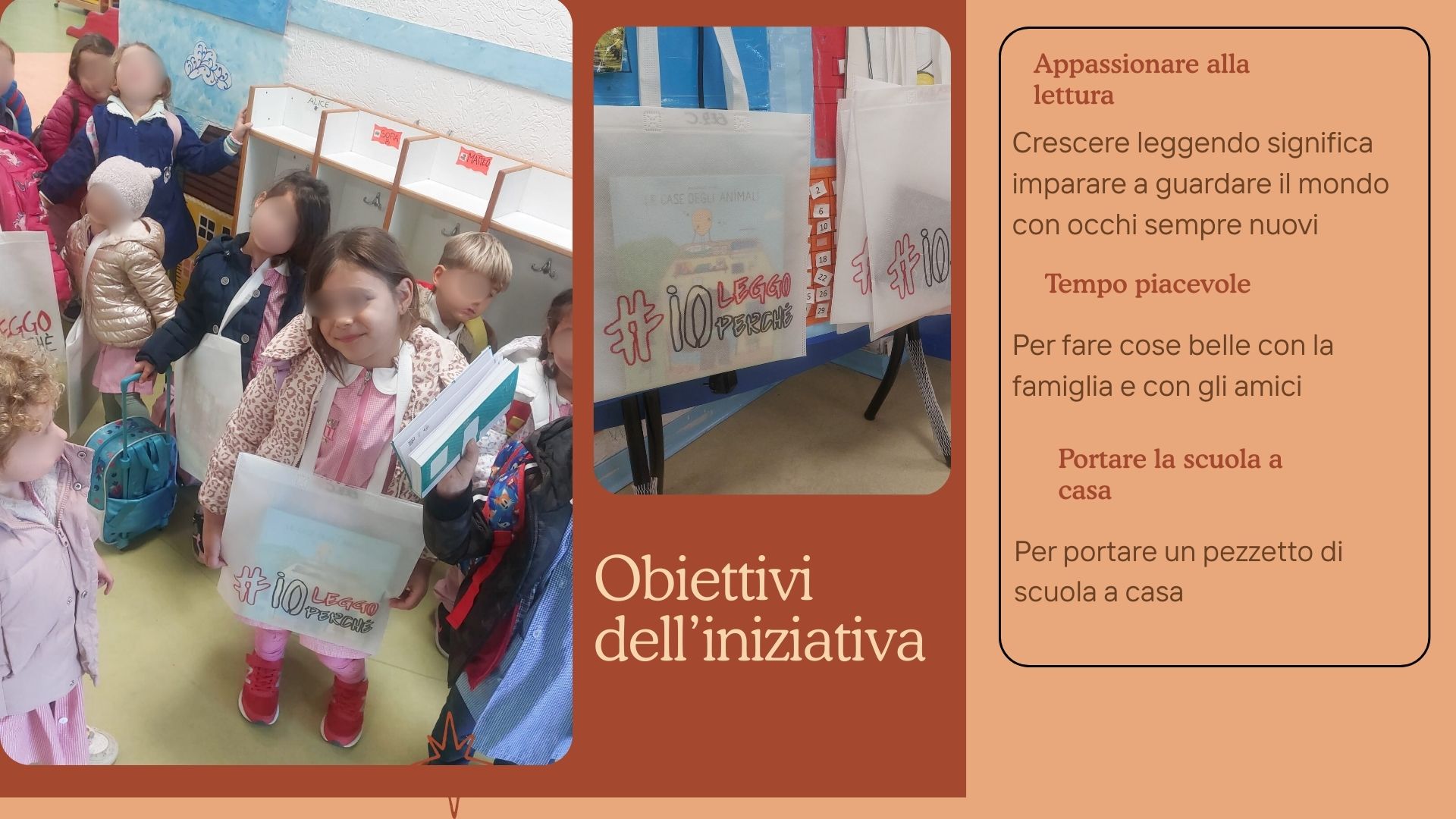 La finalità è quella di appassionare i bambini e le bambine alla lettura e di offrire un’occasione per trascorrere del tempo piacevole con i propri cari, portando con sé un pezzetto di scuola.