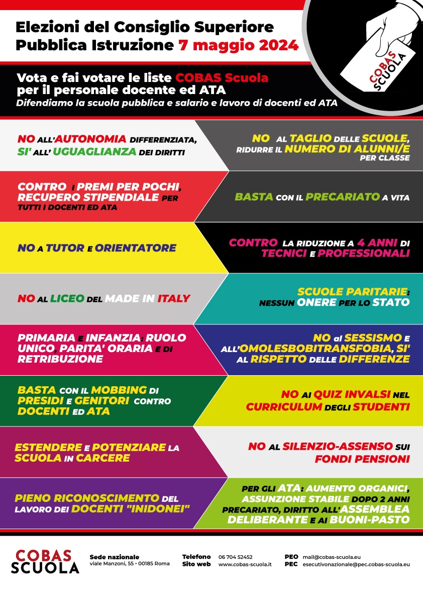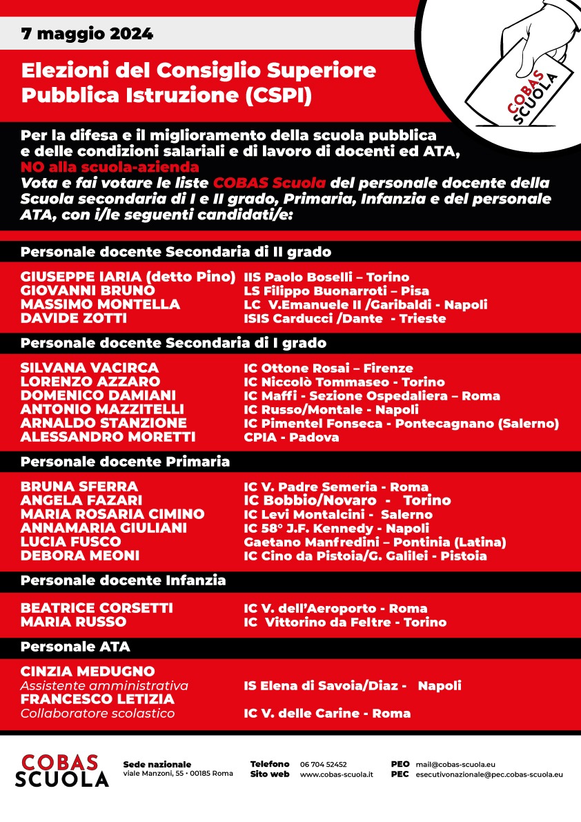 | Elenco Candidati e Piattaforma Cobas Elezioni CSPI 2024 | Per il Personale Scolastico | ||